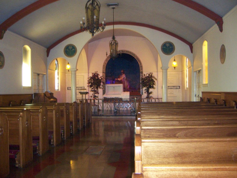 Bagües and Sons Mortuary was a full service mortuary, offering all types of services. The mortuary featured a beautiful chapel, that was built in the 1940's. The chapel featured a high arched ceiling, stained glass windows, hand painted Biblical scenes, sturdy wooden pews and was adorned with a statue of Jesus, sculpted by famous religious artist Rudolph Vargas.